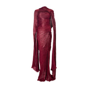 STRAPLESS PLEATED CHIFFON GEORGETE DRESS WITH PLEATED CAPE