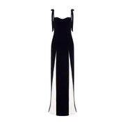 Sweetheart neckline Crepe gown with cutout slit and hand-pleated Crepe underlay