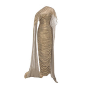 STRAPLESS SILK HAND PLEATED DRESS WITH HAND PLEATED CAPE