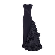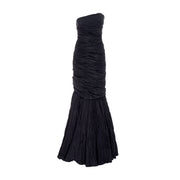 Strapless Italian Tafeta draped gown with hand pleated Tulle underneath