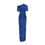 Strapless Italian Tafeta draped gown with hand pleated Tulle underneath