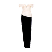 Off Shoulder hand pleated mikado top and hand pleated Taffeta skirt