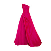 Strapless hand-pleated Satin-like draped dress with slit and cape