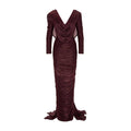 Hand-pleated silk long-sleeve gown with a draped bust, intricate back detailing, and internal boning for a structured, elegant silhouette