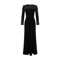 Long-sleeve crepe gown with exquisite embroidered detailing on the shoulders and sleeves.