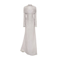 Hand-pleated silk off-shoulder gown with sleeves, structured boning, and a detachable high-neck cape for a regal finish
