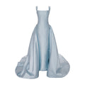 STRAPED SLEEVE MIKADO GOWN WITH DETACHABLE TAIL