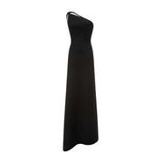 One Shoulder Crepe Dress With Cape