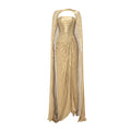 Load image into Gallery viewer, Strapless Pleated Silk Dress With Slit And Detachable Cape