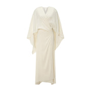Strapless Pleated Silk Dress With Slit And Detachable Cape
