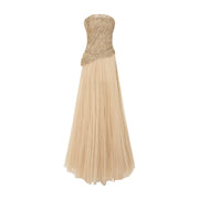 Strapless Embroidered Dress With A-line Cut Pleated Tulle