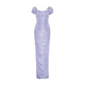 Off shoulder, hand pleated draped Satin-like gown with soft wires on top