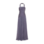 ALINA - STRAPLESS PLEATED CHIFFON GOWN WITH CAPE