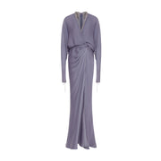 CAMILA - DRAPED SATIN GOWN WITH STRUCTURED COLLAR