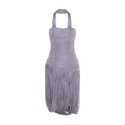 YASMINA - STRAPLESS PLEATED SILK MIDI WITH CORSET AND FRINGES