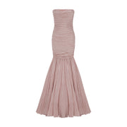STRAPLESS PLEATED TAFFETA DRESS WITH DRAPED OVER SKIRT