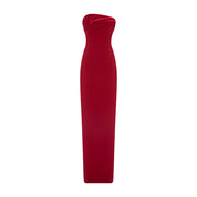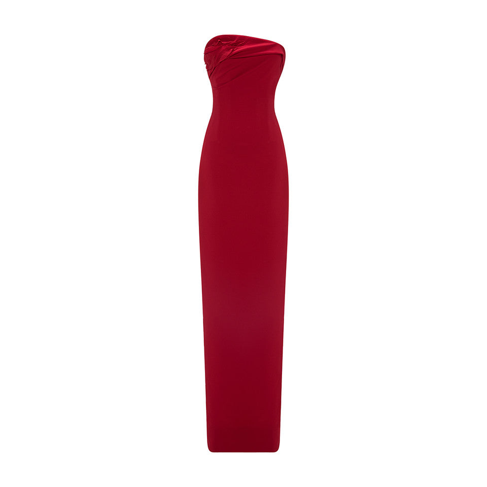 STRAPLESS PLEATED DUCHESSE SATIN DRESS WITH DUCHESSE SATIN BACK CAPE