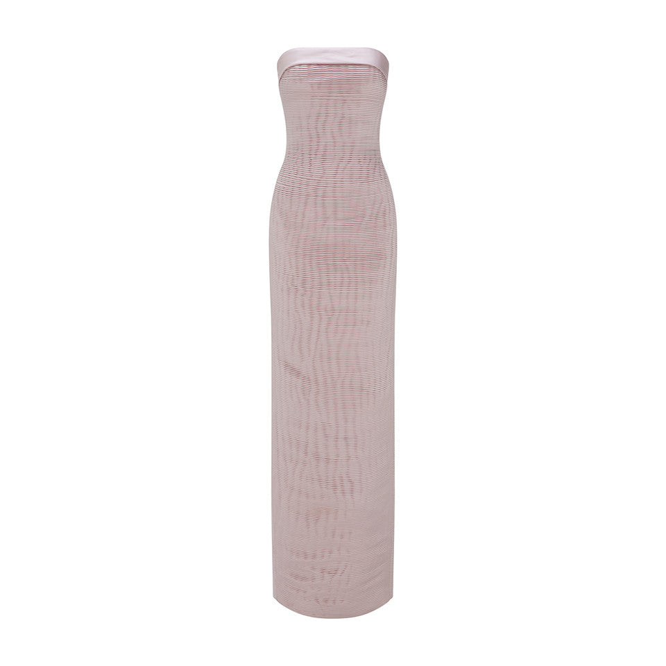 STRALESS FISH CUT TULLE DRAPED DRESS WITH EMBROIDERED SEQUIN