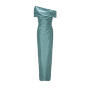 OFF SHOULDER FISHCUT PLEATED TAFFETA DRESS