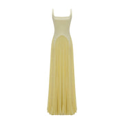 SILK ROSEYA PLEATED DRESS WITH DETAILED SLIT