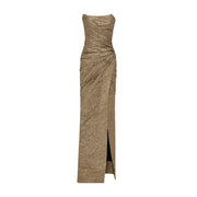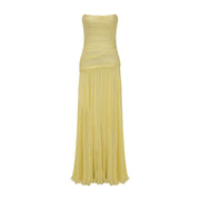 STRAPLESS SILK ROSEYA PLEATED DRESS