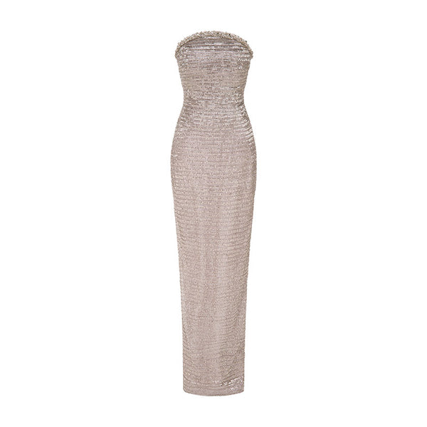 STRAPLESS CRYSTAL STONE STRAIGHT GOWN
